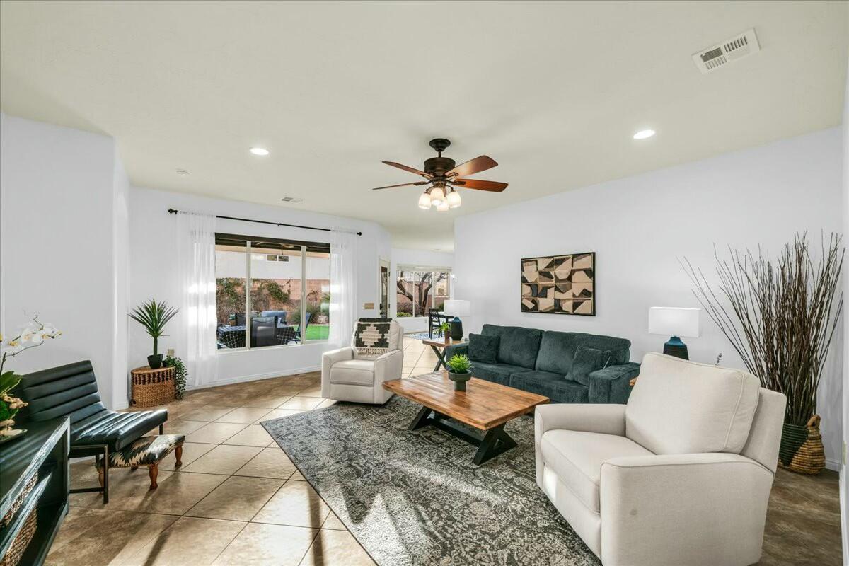 Stunning home in the vibrant SunRiver community of St. George, Utahan active adult neighborhood designed to keep you feeling young and energized! This beautifully maintained 3-bedroom, 2-bathroom home offers 1,681 sq. ft. of comfortable living space on a 6,098 sq. ft. lot.